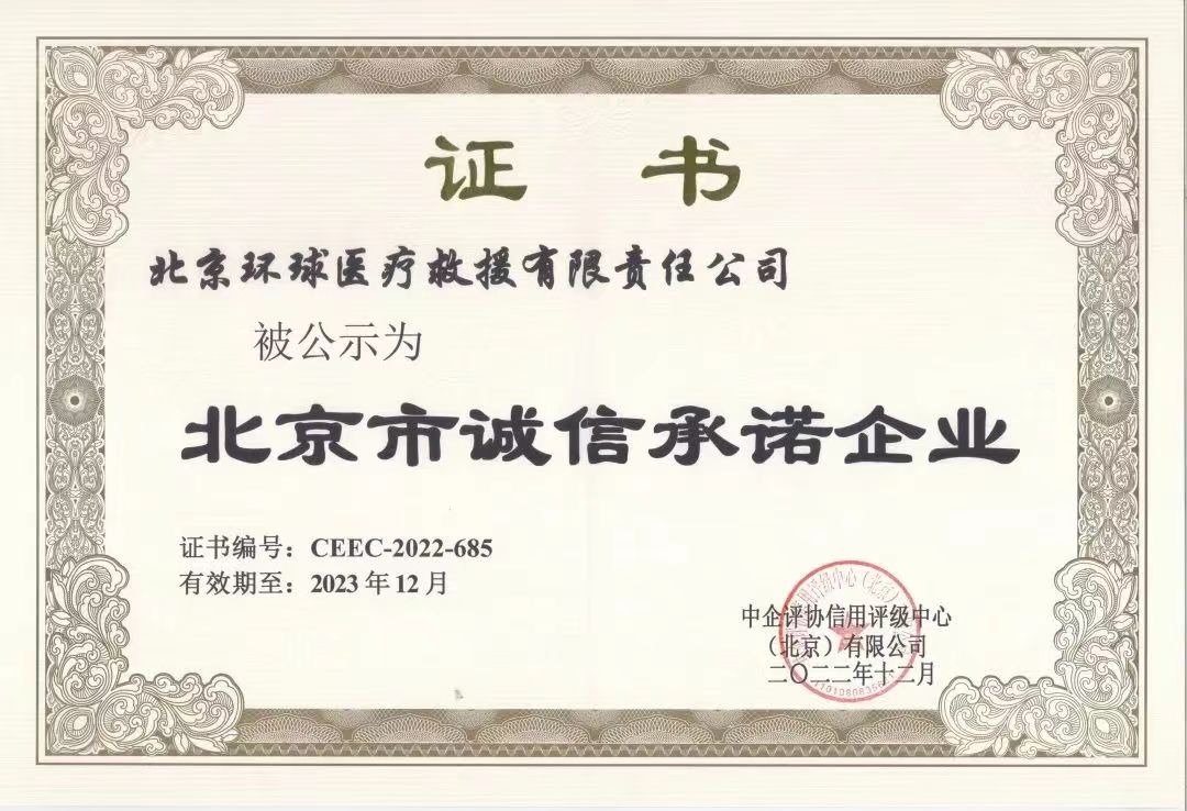 北京环球医疗入选首批“北京市诚信承诺企业